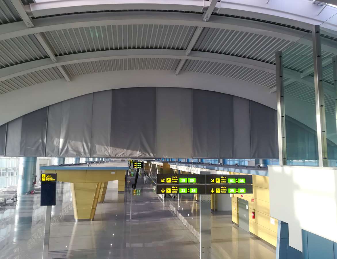 Las cortinas de humo contienen y canalizan el humo, impidiendo que se disperse por todo el recinto. Su instalación es especialmente relevante en espacios abiertos o de gran volumen, como terminales aeroportuarias, donde es fundamental guiar su movimiento de forma controlada.