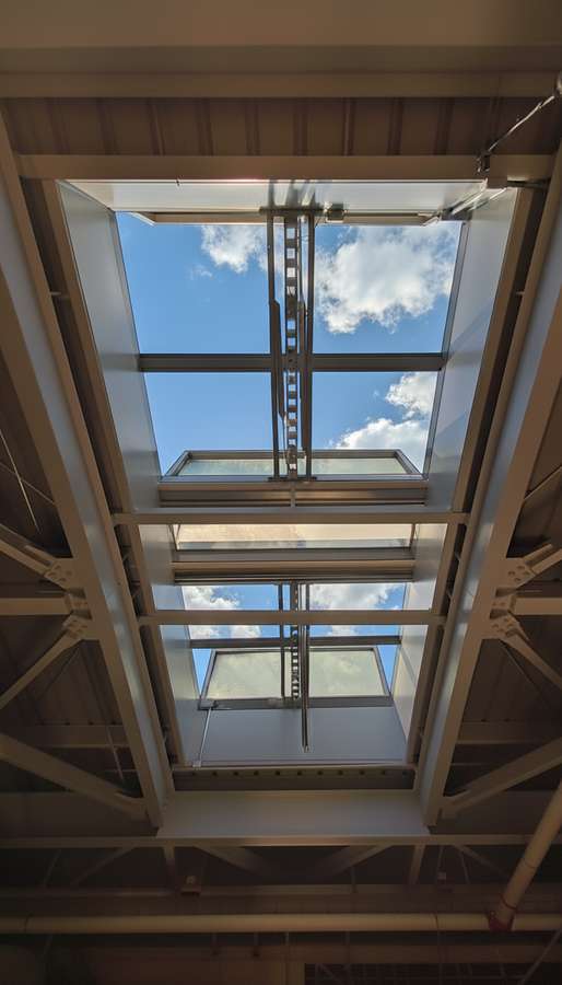 La función principal de los exutorios o aireadores es permitir la evacuación del humo y los gases calientes generados durante un incendio, contribuyendo a la creación de un entorno más seguro. Además, pueden utilizarse para la ventilación natural diaria del edificio y permiten la entrada de luz cenital, mejorando el confort y reduciendo el consumo energético.